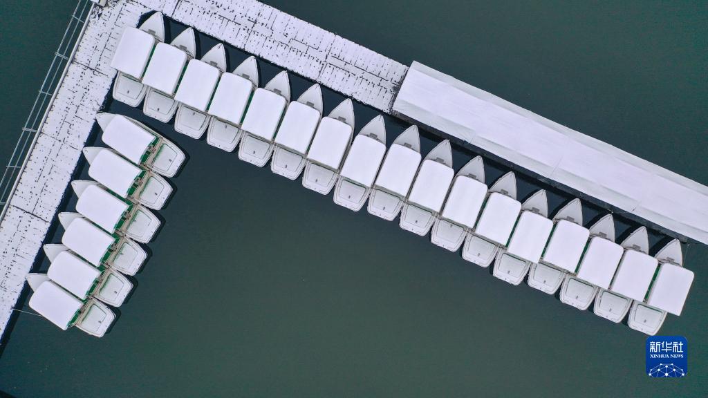 11月1日拍攝的長春市南湖公園雪景(無人機照片)。