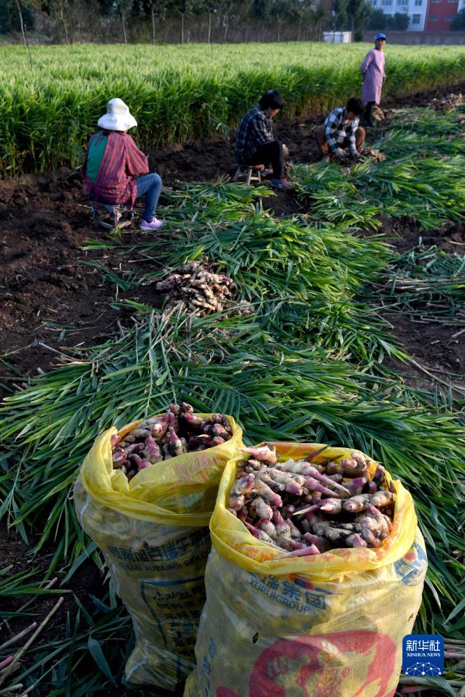 10月31日,河南省博愛縣鴻昌街道的農民在收獲懷姜。