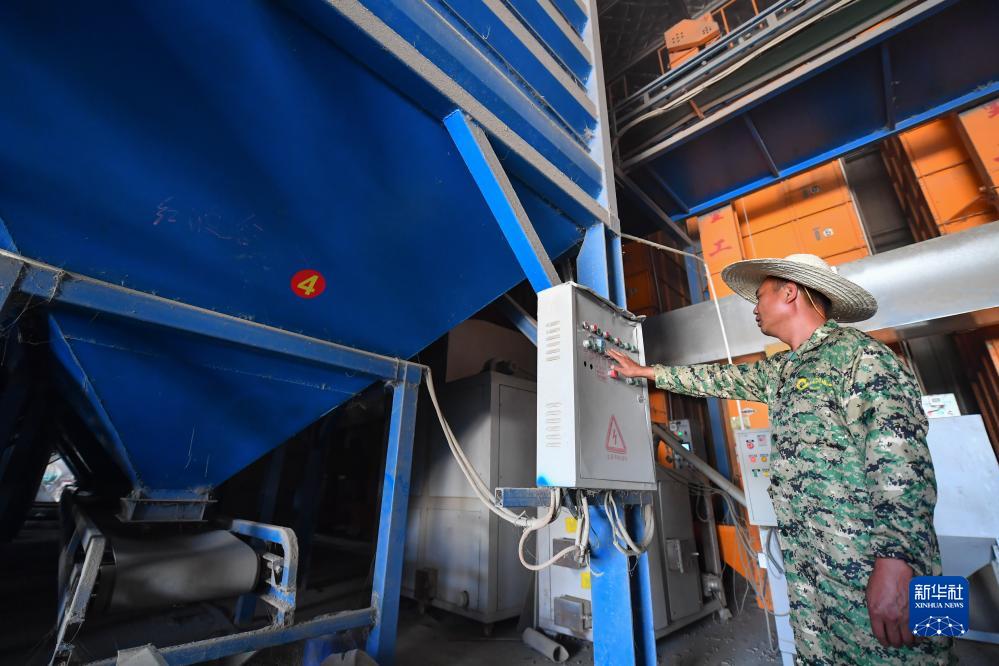 11月1日,在湖南省瀏陽市龍伏鎮坪上村,農戶檢查糧食儲藏倉運行情況。