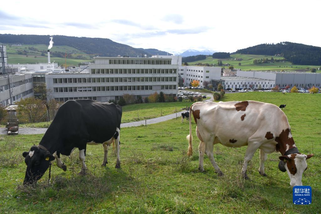 這是10月31日在瑞士科諾爾芬根雀巢工廠外的牧場拍攝的奶牛。