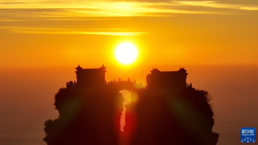 11月1日在貴州梵凈山國家級自然保護區拍攝的日出景觀(無人機照片)。