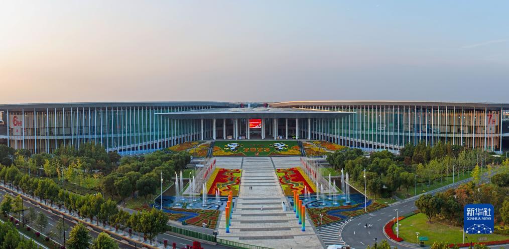 即將迎來第六屆進博會的國家會展中心(上海)(10月24日攝,拼接圖片)。