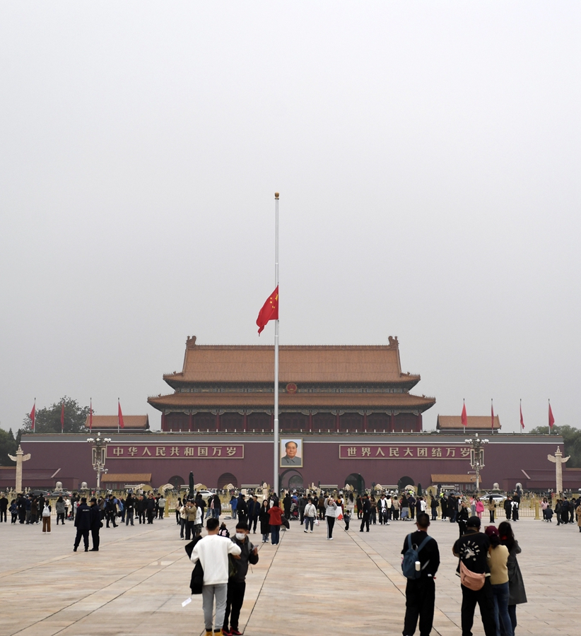 11月2日,為悼念李克強同志,首都天安門下半旗志哀。
