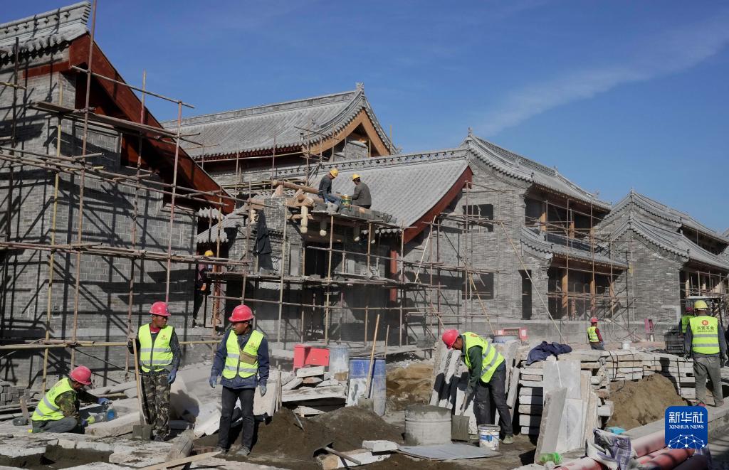 11月1日,工人在河北省張家口市萬全右衛城長城國家文化公園文旅融合區項目建設工地施工。