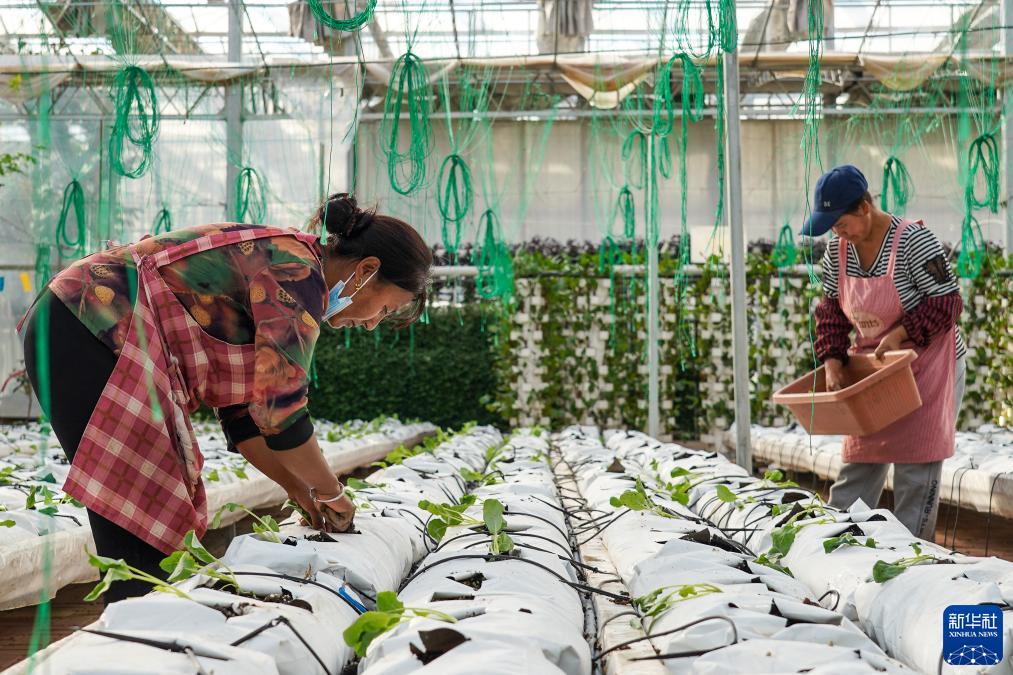 日前,山東省濟南市歷城區蘆南村村民搶抓農時,在大棚內插枝育苗,為新一季高標準果蔬生產打基礎。近年來,位于山區的蘆南村依托“黨支部+合作社+企業”發展模式,建設高標準果蔬生產大棚,帶動村民創富增收。