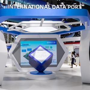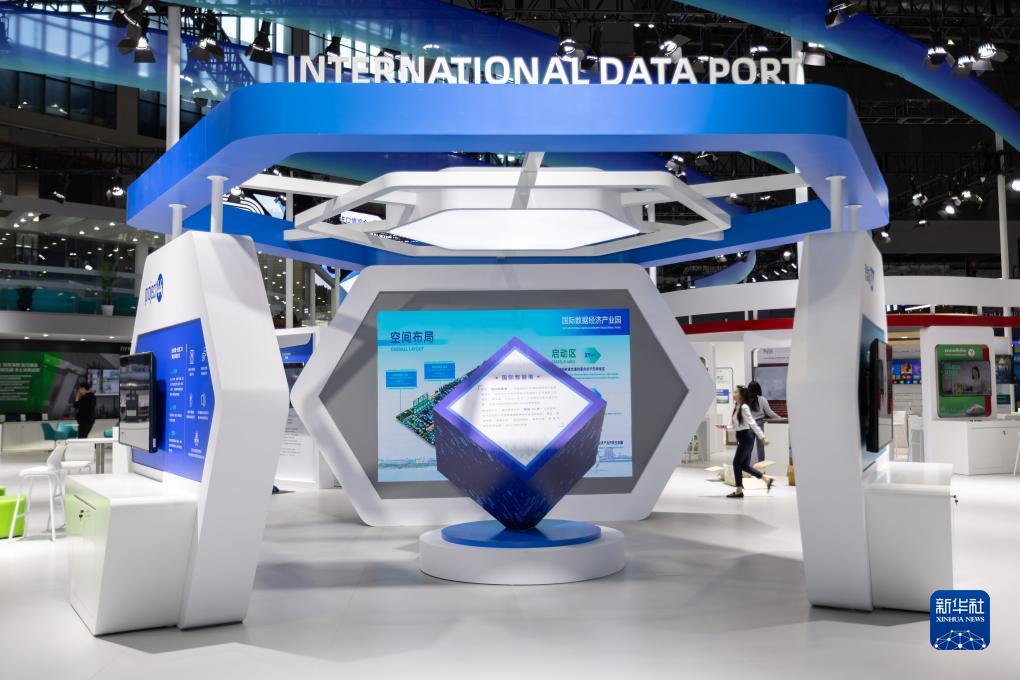 這是11月2日在技術裝備展區臨港展示區拍攝的國際數據經濟產業園展臺。