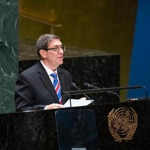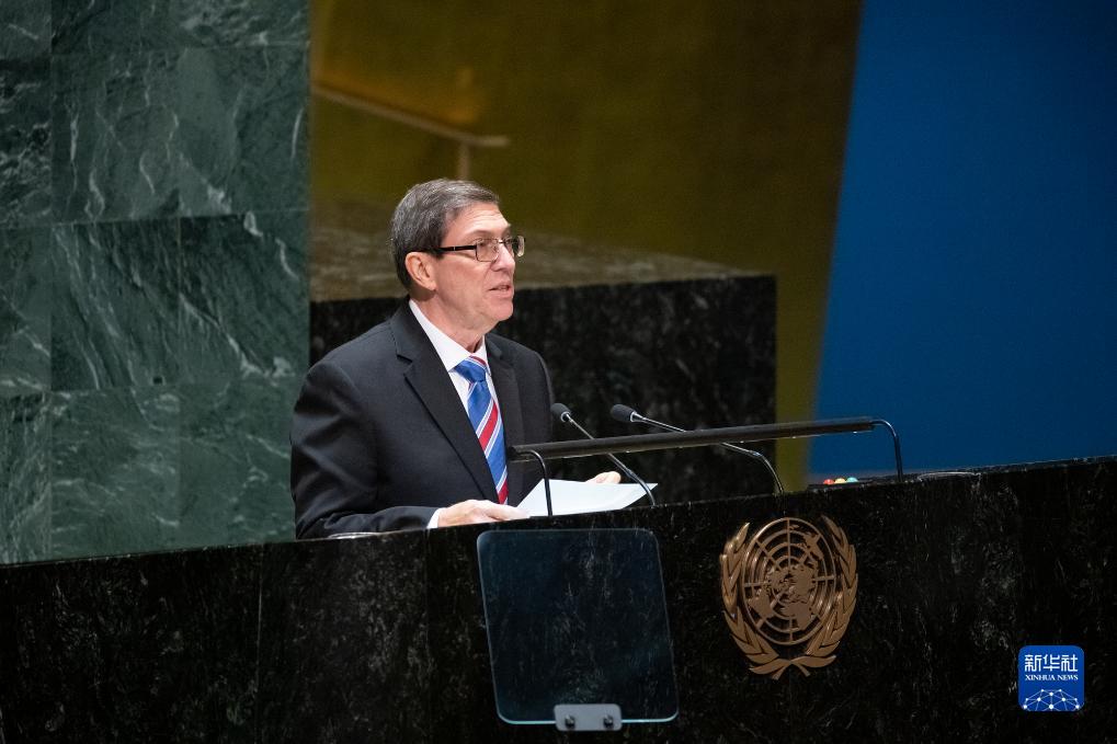 11月2日,在位于紐約的聯合國總部,古巴外交部長羅德里格斯在投票前發言。