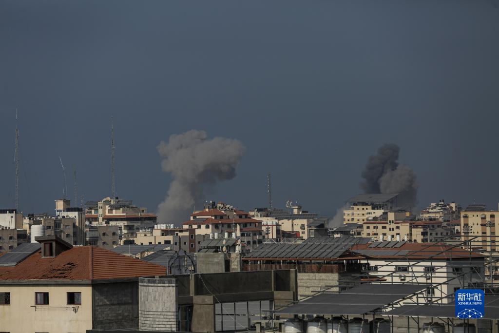 11月2日,加沙城遭以軍空襲后升起濃煙。
