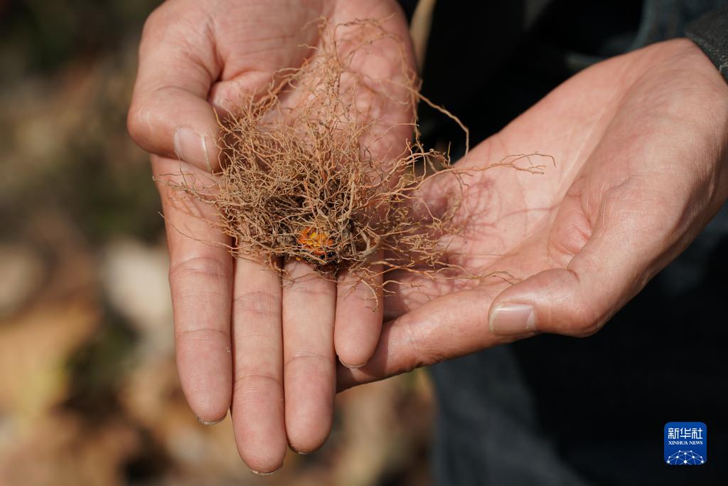 11月2日,技術人員在鎮坪縣城關鎮友誼村黃連林下經濟示范園內查看黃連。