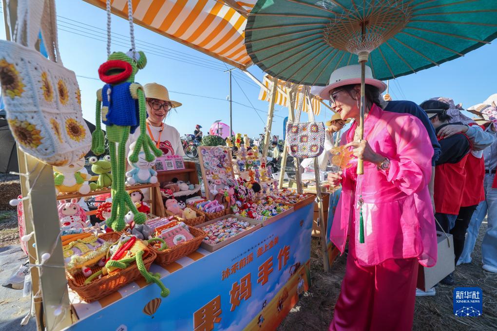 11月2日,游客在豐收市集觀看特色農文旅產品。