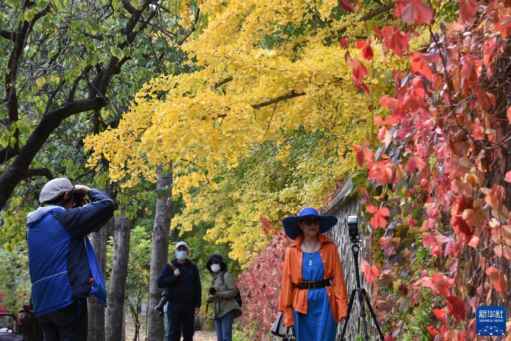 深秋時節,北京圓明園內層林盡染,園內種植的銀杏、白蠟樹、楓樹、槭樹、黃櫨等彩葉觀賞樹種,色彩斑斕,形成多個彩葉觀賞區,吸引眾多游客駐足觀賞、留影。