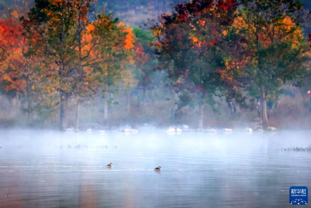 11月2日在湖北省黃岡市羅田縣九資河拍攝的秋日晨景。