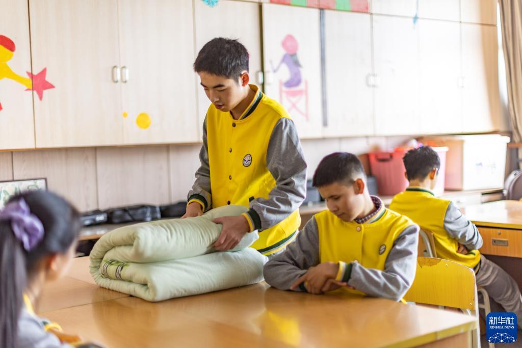 10月30日,在重慶市特殊教育中心的教室內,幾名六年級的視力障礙學生進行疊被子生活技能小比賽。