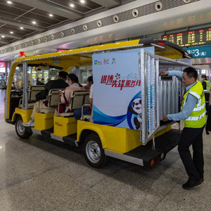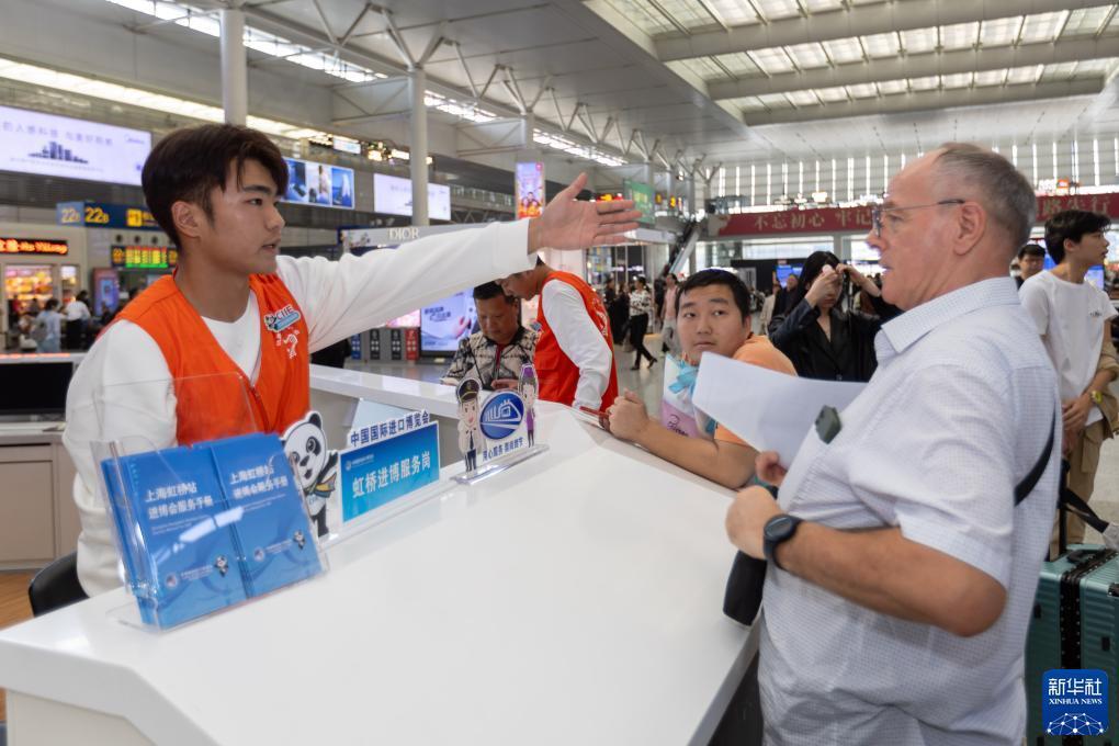 第六屆中國國際進口博覽會開幕在即,上海虹橋火車站在站廳內設立進博志愿者和進博服務窗口,在售票處開辟了進博會服務專區,并開行上海虹橋站進博直通車,參展旅客和相關工作人員出示相關證件即可免費搭乘,直接前往國家會展中心(上海)。