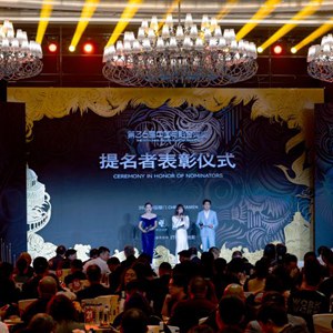 這是11月3日拍攝的第36屆中國電影金雞獎提名者表彰儀式現場。