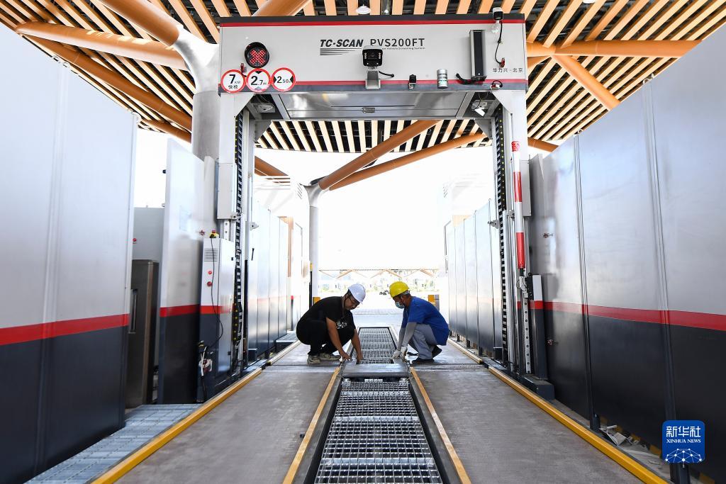 11月3日,工人在??谛潞8酆湍细邸岸€口岸”(客運)客運查驗設施、設備建設項目上進行調試安裝。