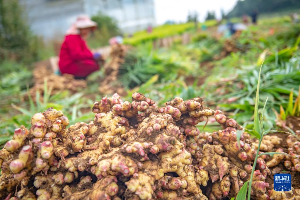 11月4日,云南省文山壯族苗族自治州西疇縣興街鎮多依坪村的農民在田間收獲生姜。