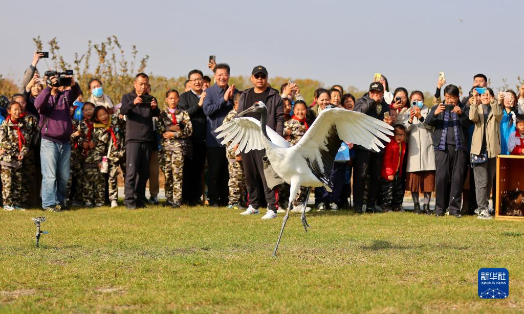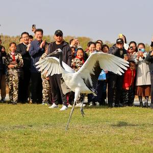 11月4日,國家一級保護動物丹頂鶴被放飛。