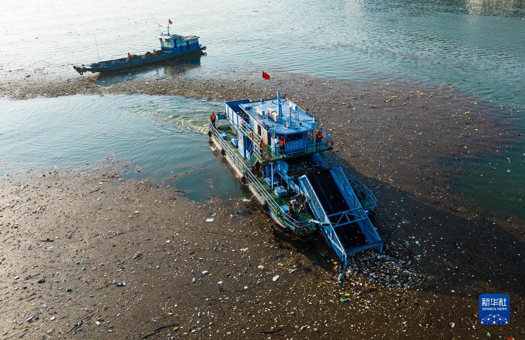 今年汛后三峽水庫蓄水至175米水位以后,水庫兩岸消落帶上的枯枝、秸稈、塑料等漂浮物聚集江面。位于三峽壩上庫首的湖北省宜昌市秭歸縣積極組織清漂作業人員和機械作業船舶,進行全天候攔截清理,以確保三峽水庫水質、船舶行駛和三峽樞紐運行安全。