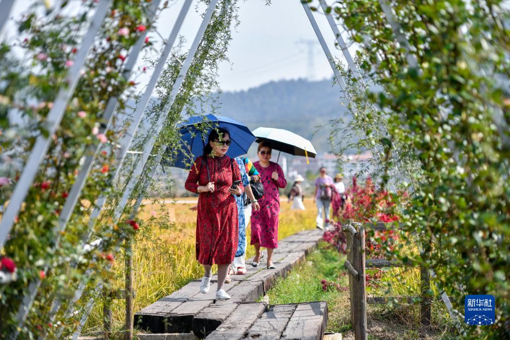 11月3日,游客在位于黃梅縣大河鎮的袁夫稻田游玩。