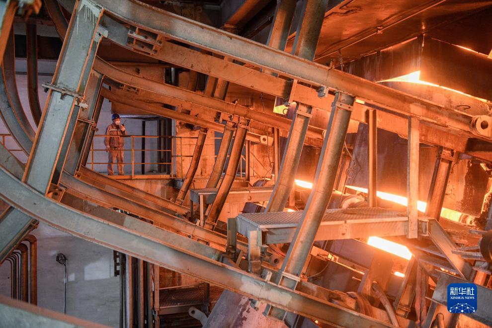 11月4日,在承德市營子區一家特殊鋼生產企業,工人查看連鑄機運轉情況。