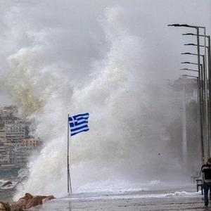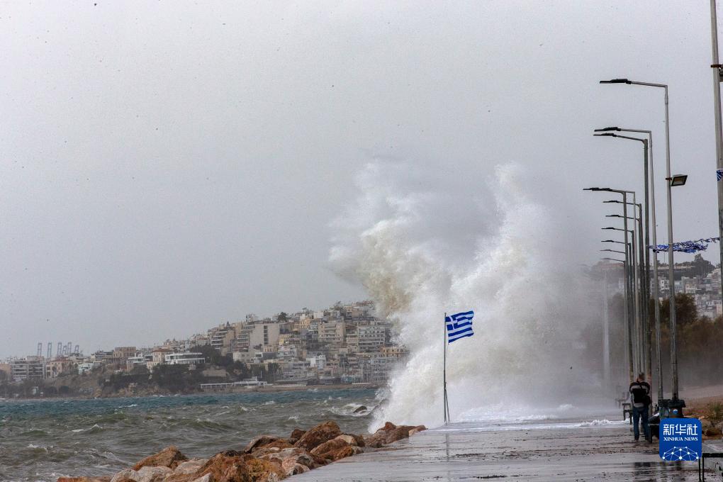 這是11月4日在希臘雅典海邊拍攝的大浪。