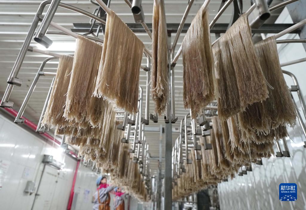 11月4日,工人在河北省盧龍縣一家甘薯深加工企業的粉條生產車間工作。