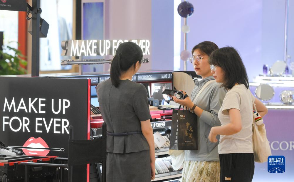 游客在中免集團??谌赵聫V場免稅店選購商品(7月12日攝)。