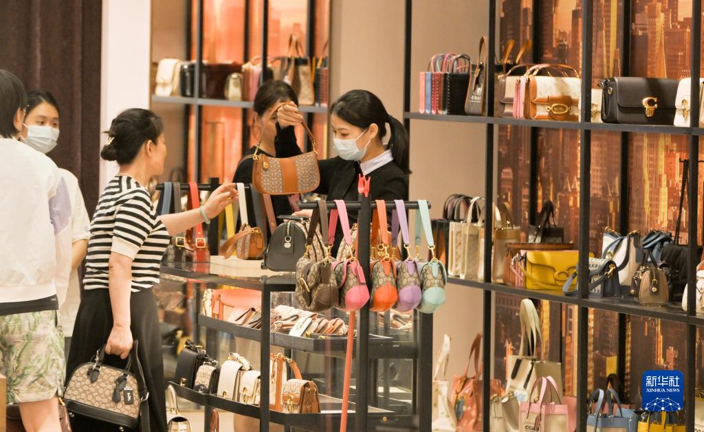 游客在中免集團??谌赵聫V場免稅店選購商品(8月5日攝)。