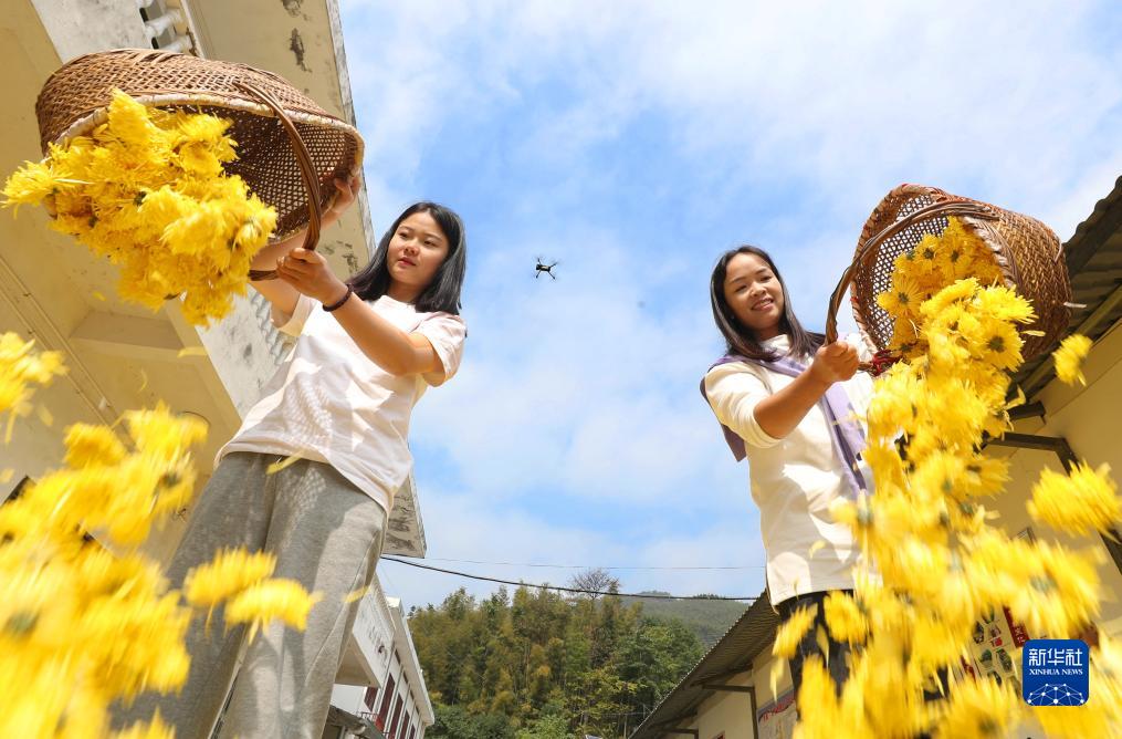 近日,湖南省衡陽市南岳區壽岳鄉岳林村皇菊種植基地種植的高山皇菊進入收獲期,當地村民搶抓晴好天氣采摘、加工。近年來,岳林村依托當地高山林地,大力發展觀賞性強、經濟價值高的高山皇菊種植,推動當地農旅融合發展,帶動農民增收。