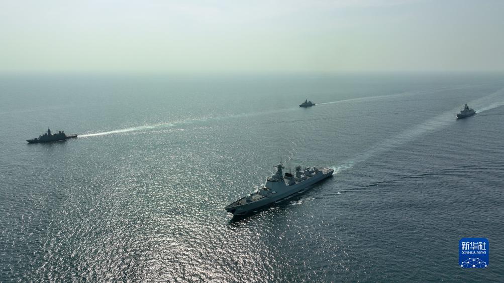 11月3日,中國海軍第44批護航編隊在阿布扎比扎耶德港附近海域與阿聯酋海軍進行海上聯合演練,雙方艦艇組成雙縱隊航行。