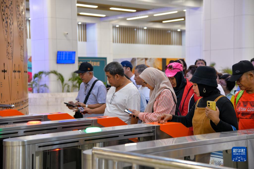 11月5日早,在印度尼西亞雅加達哈利姆站候車大廳,人們刷票準備前往站臺乘坐當日第一班高鐵。