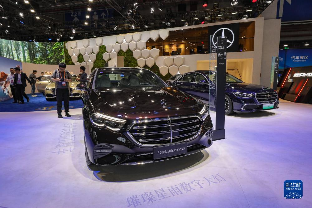 11月5日,在第六屆進博會汽車展區,梅賽德斯-奔馳全新長軸距E級車E300L轎車迎來中國首展。