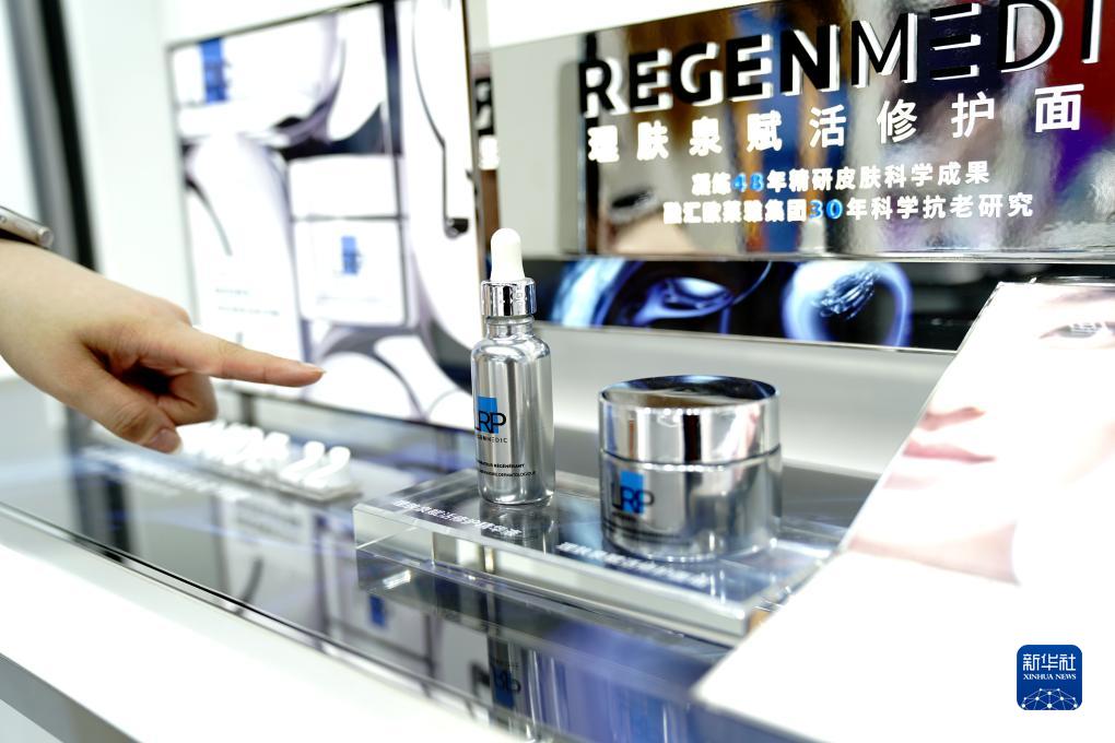 11月5日,在第六屆進博會消費品展區歐萊雅展臺,工作人員介紹一款全球首發的新產品。