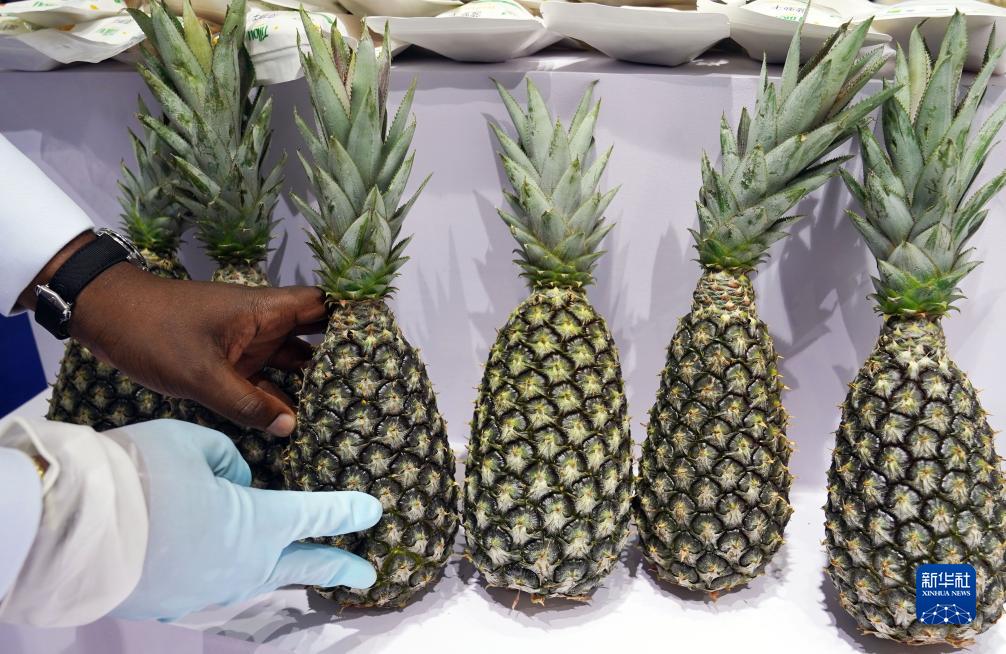 11月5日在第六屆進博會食品及農產品展區拍攝的首次亮相中國的貝寧菠蘿。