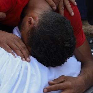 11月5日,在加沙地帶南部城市汗尤尼斯,人們悼念在沖突中去世的親友。