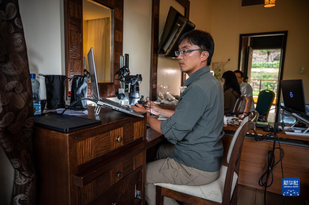 11月3日,中肯聯合考古隊中方現場負責人趙清坡在位于肯尼亞巴林戈郡馬里加特鎮的臨時駐地內工作。