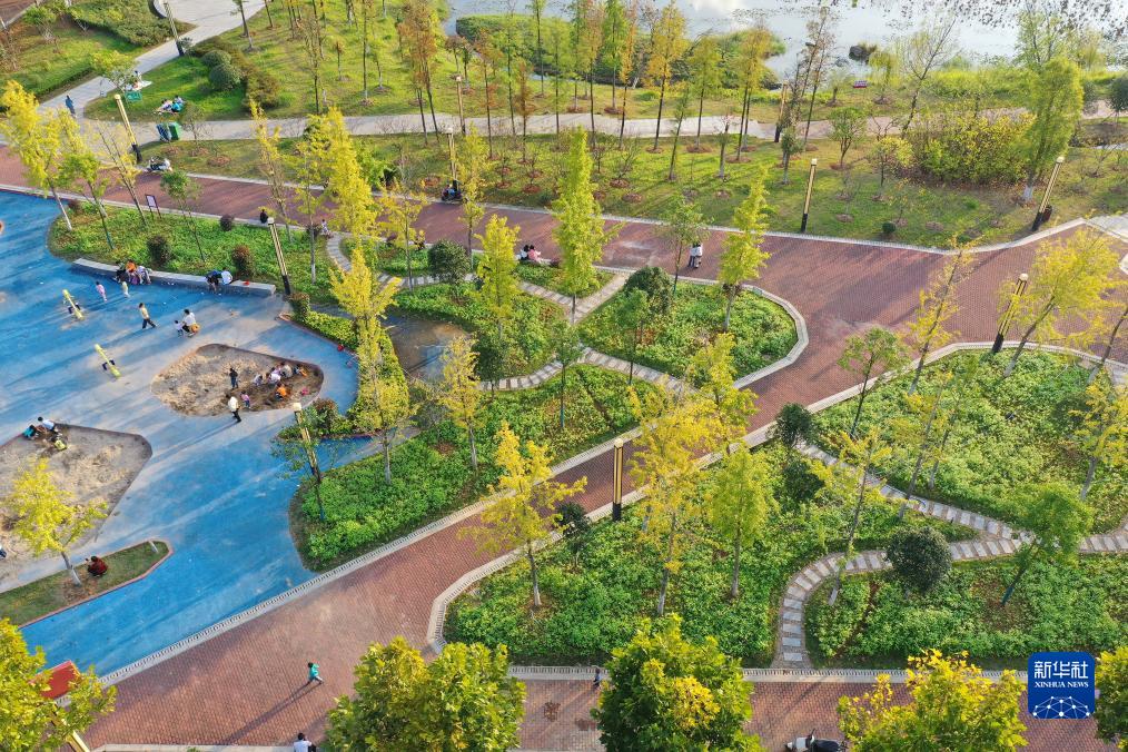 11月4日,人們在湖南省永州市道縣紹基公園休閑游玩(無人機照片)。