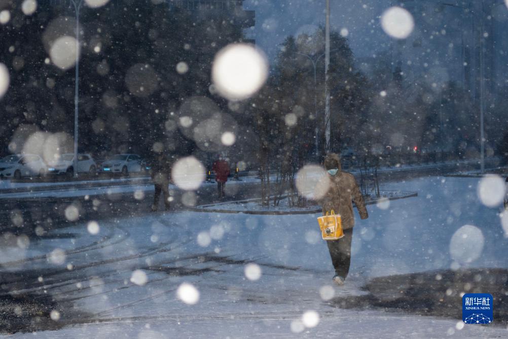 11月6日,在哈爾濱市香坊區,行人在雪中行走。