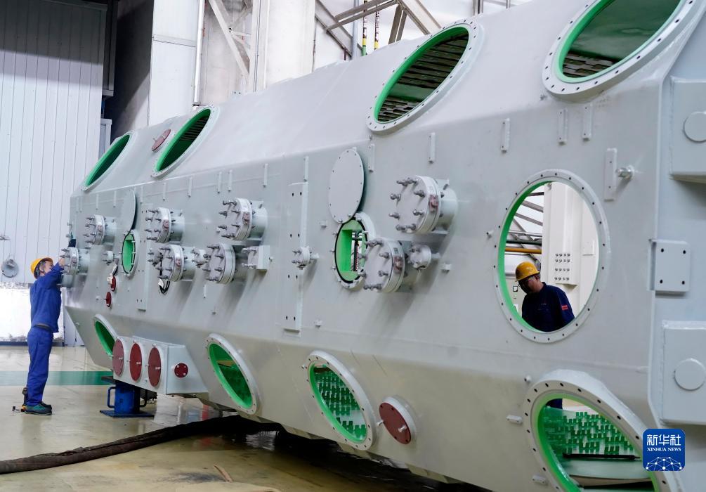 11月5日,工人在秦皇島經濟技術開發區天威保變(秦皇島)變壓器有限公司的生產車間工作。