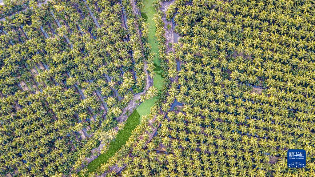 這是11月3日在泰國叻武里府丹嫩沙多拍攝的椰子園(無人機照片)。