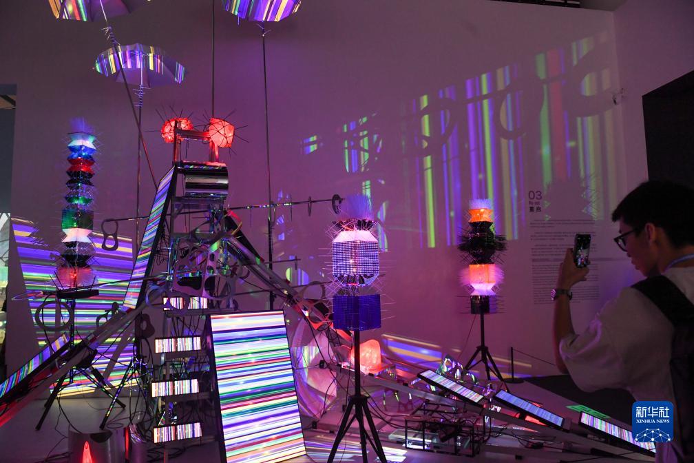11月6日,參觀者在深圳美術館(新館)觀賞“互生景觀——藝術科技展法國奧普萊獎深圳首展”。