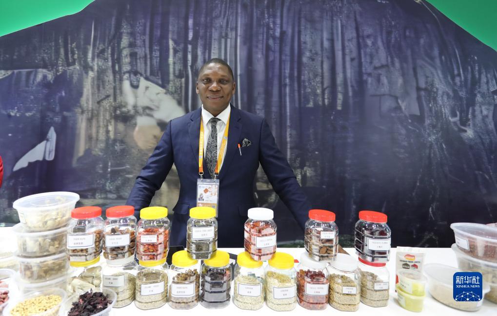 11月6日,來自尼日利亞的丹尼爾站在擺滿他經營的貨物樣品的展柜后。丹尼爾來中國三年了,這是他第二次參加進博會,他希望今年能在中國把公司開起來,進博會他會一直都來參加。
