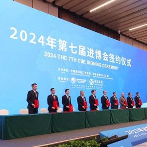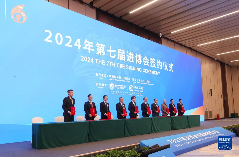 當日,2024年第七屆進博會簽約儀式在國家會展中心(上海)舉行,首批共有65家企業簽約參展2024年第七屆中國國際進口博覽會。