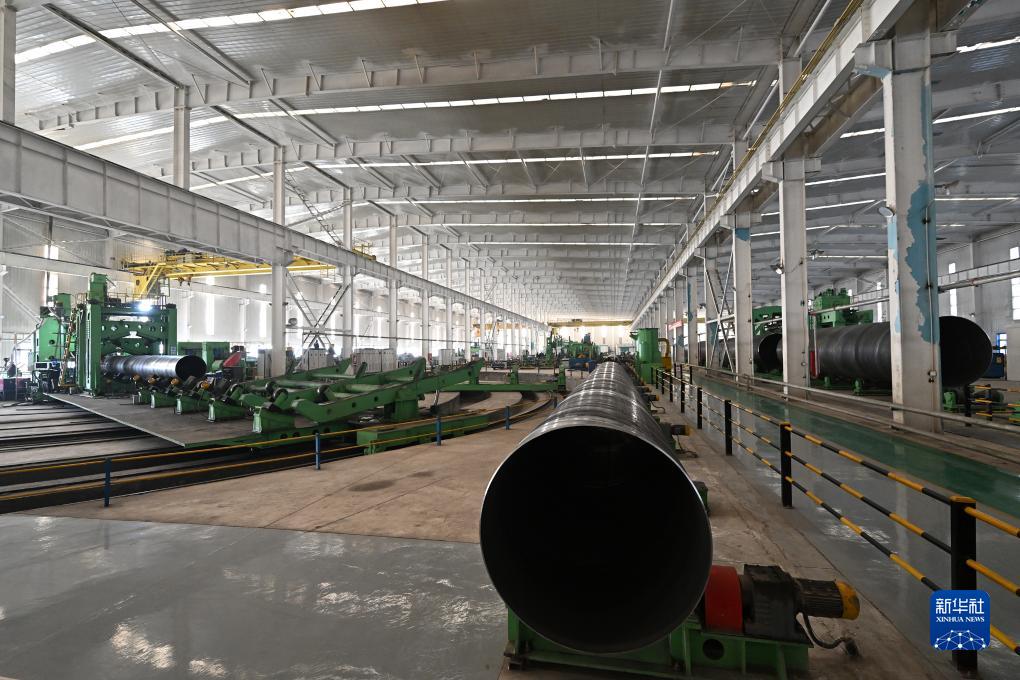 這是阿拉山口新博油氣管道制造有限責任公司的生產車間(11月4日攝)。該公司主營高端焊管的生產、保溫、防腐等業務。