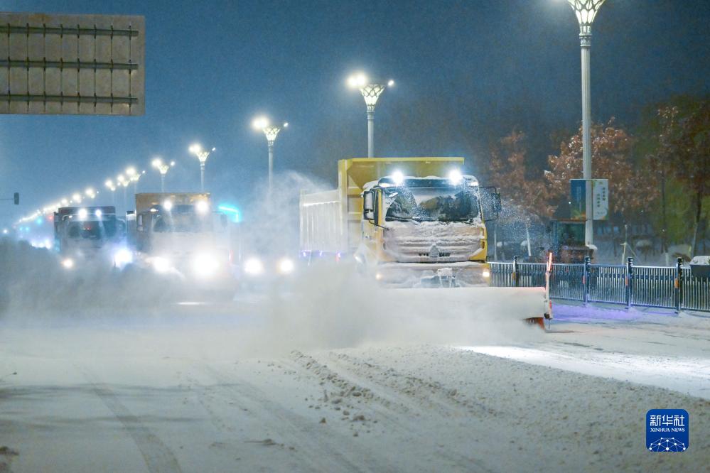 11月6日,清雪車在哈爾濱友誼西路上清除路面積雪。