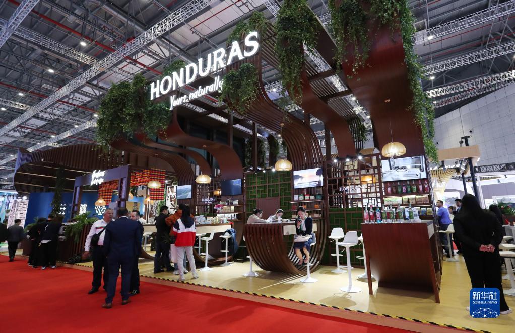 這是11月6日拍攝的第六屆進博會國家展洪都拉斯展臺外景。