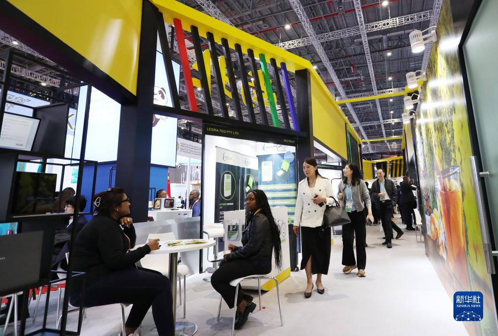 11月6日,參觀者在第六屆進博會國家展南非展臺參觀。