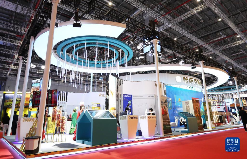 這是11月6日拍攝的第六屆進博會國家展哈薩克斯坦展臺。