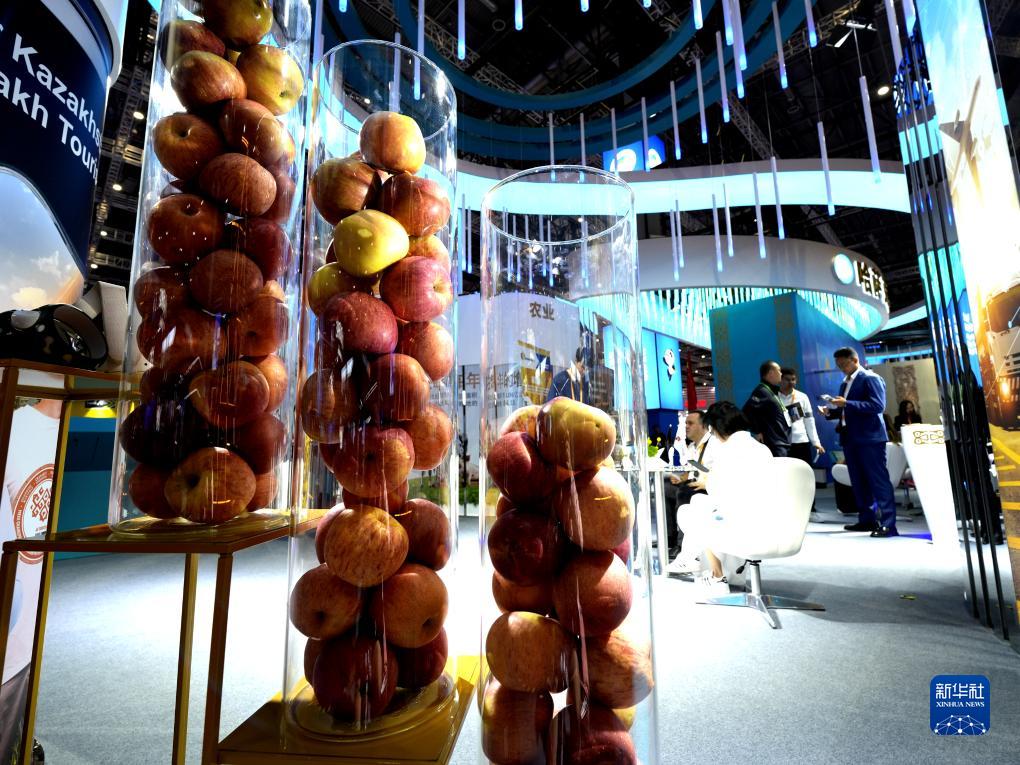 11月6日拍攝的第六屆進博會國家展哈薩克斯坦展臺。